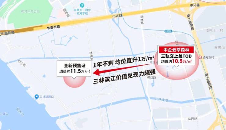 第二,中企云萃森林是3轨交地铁盘,不管是从交通、生活模式还是从配套能级来看,中企云萃森林在整个三林滨江片区,都称得上是出众。