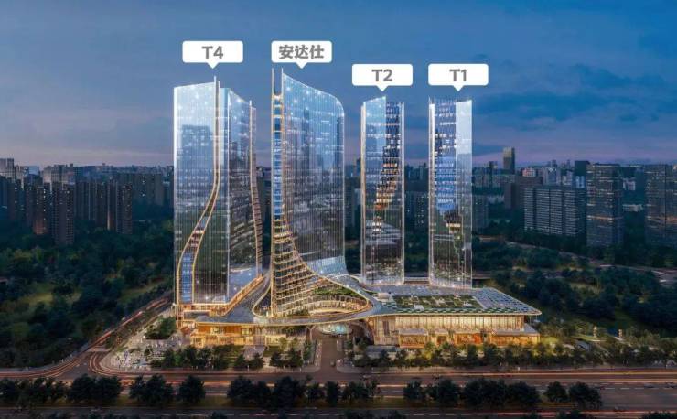 杭州之門、大小蓮花碗、日月同輝、體育遊泳館、市民中心,這“七星耀錢塘”的絕版盛景,組成奧體擁江核心區的新一代城市封面。而在這黃金中軸線之上,落下的點睛之筆,則是形似“杭州裙擺”的海威·安鉑中心。