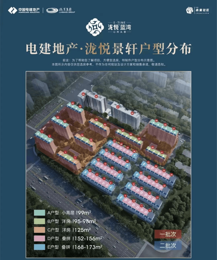 项目本次加推为9幢叠加别墅组成,泷悦蓝湾本次加推128套建面约153-173㎡叠加别墅,共计128套。
