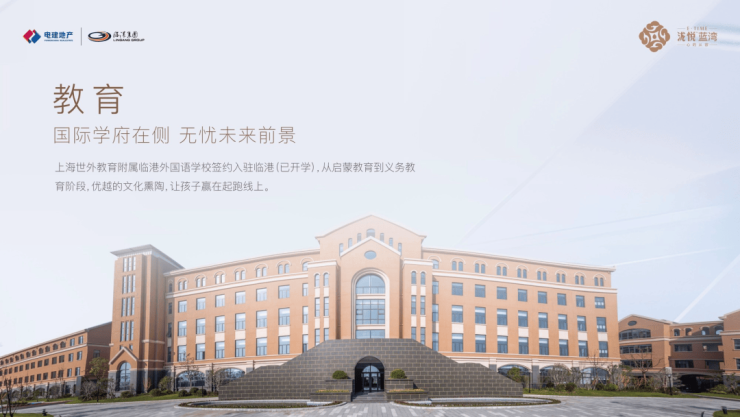 教育资源方面:上海世外教育附属临港外国语学校(小学加初中九年制),项目旁边同时规划建设临港蓝湾幼儿园书香氤氲,浸润成长之路。