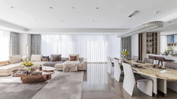 建筑面积约320㎡的4房4卫2厅设计,拥有专属入户电梯及专属独立门厅,业主私密性和安全感得到最大程度保障。结合高达约82%得房率的优势,整体专享私域空间更具高定和纯粹。为符合疫情常态化的生活需求,项目特配置只需语音即可联动的,智能家居控制系统和消毒系统。