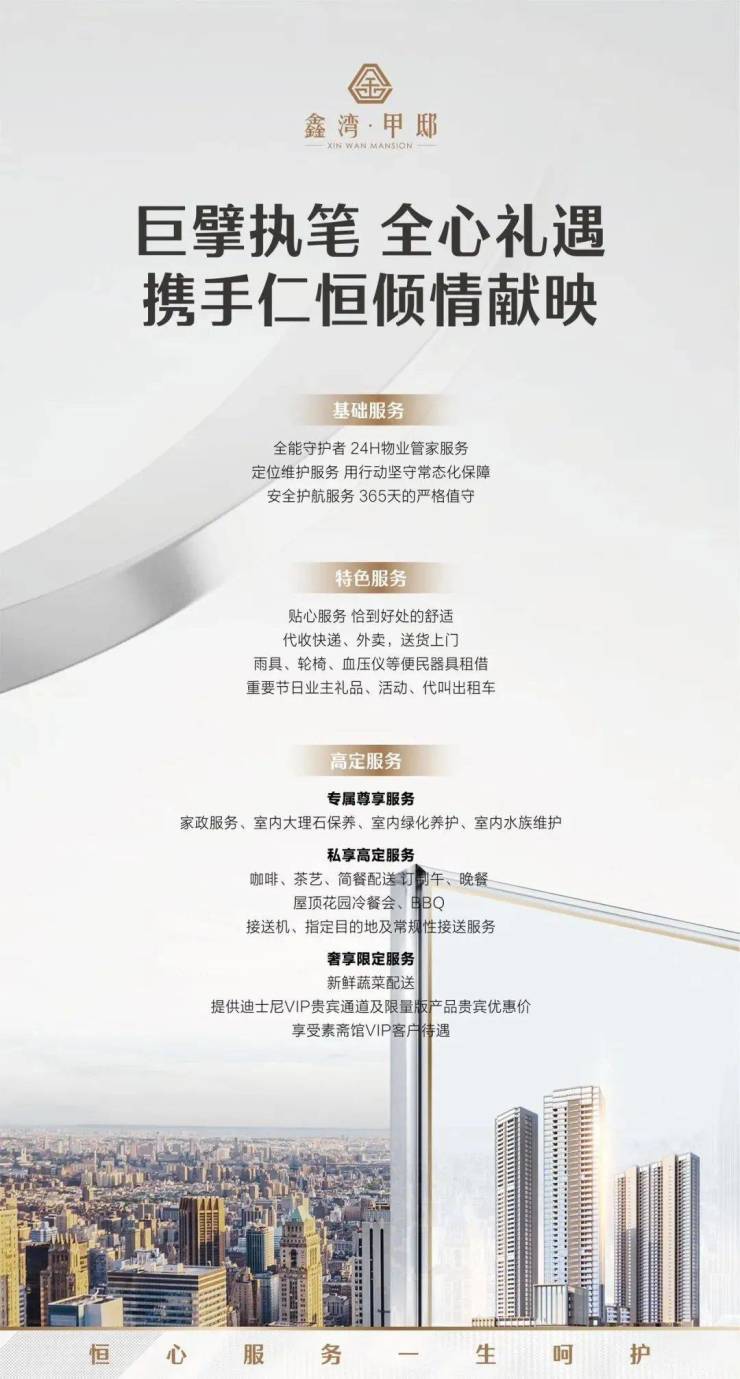 专属尊享服务:家政服务、室内大理石保养、室内绿化养护、室内水族维护。