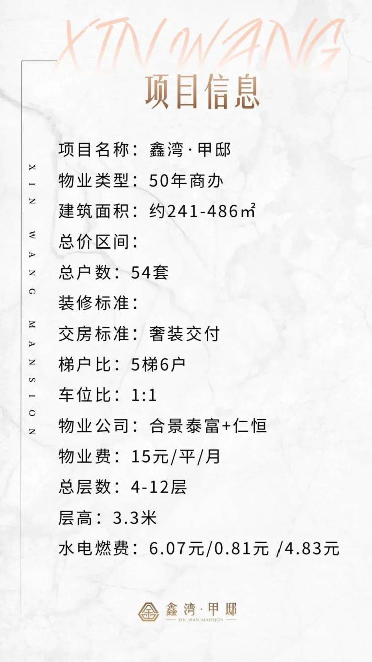 【物业】:合景泰富+仁恒,物业费15元/平/月