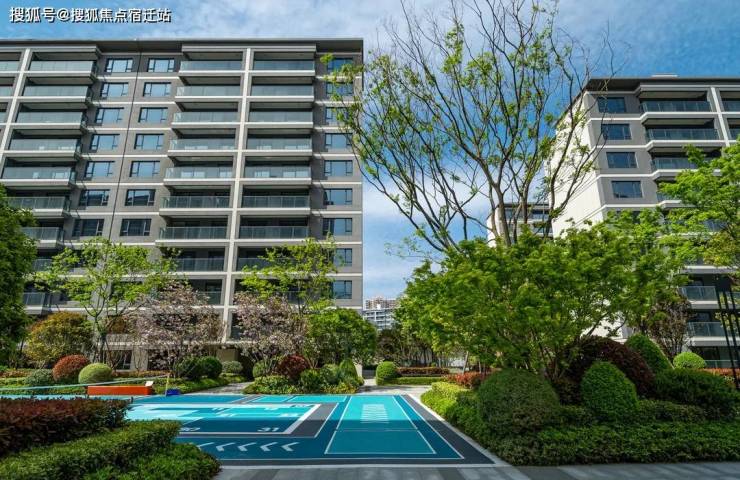 现代简约立面,恒久矗立,楼栋错落排布,与园林交相辉映,推窗即见绿树繁花、水景亭台。
