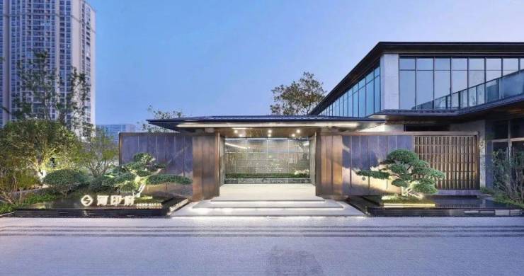 你看,坡顶飞檐、阶梯入门、青松绿植、格栅围墙……高门大户般的门头,流转着东方气韵,再现风雅之境。