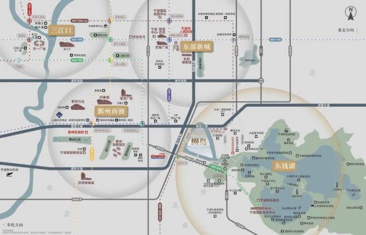 快速畅达鄞州万达、印象城、阪急、宁波中心大厦、东部银泰城、文化广场等;近享钱湖印(在建)、全球卖场开市客、韩岭老街等优质生活圈。