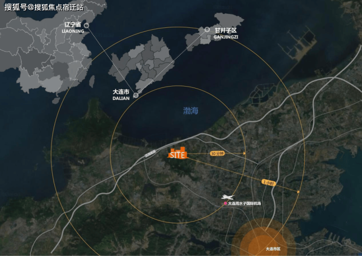 项目位于辽宁省大连市甘井子区,占地56583平方米,北侧朝海,东南侧背山,拥有依山傍海的自然环境优势,远离喧嚣城市,居于山海间,享诗意生活。