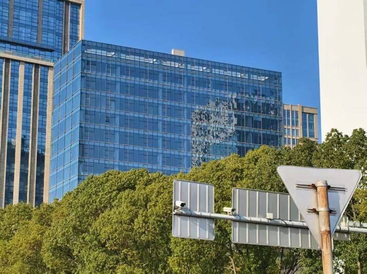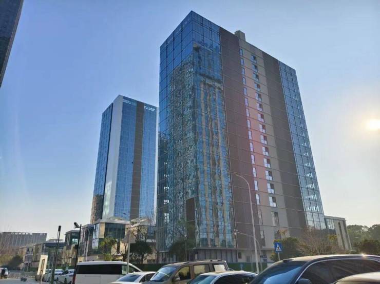 临近十字路口,玻璃幕墙贯穿到顶,绿化率21%+等特色,彰显企业形象。