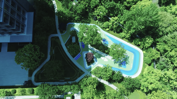例如,项目中包含两个个南北向的儿童乐园,南边的乐园以功能性运动设施为主,如网球场;而北边的则以体验式森林主题为主。在世博天悦,总能发现适合自己的休闲松弛的空间。