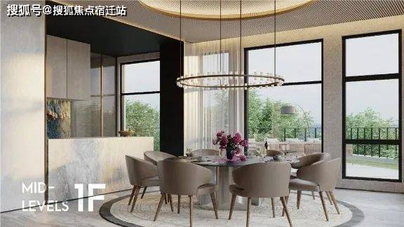 客厅7M超大面宽承接景观庭院,餐厅5M面宽尽享私宴奢华