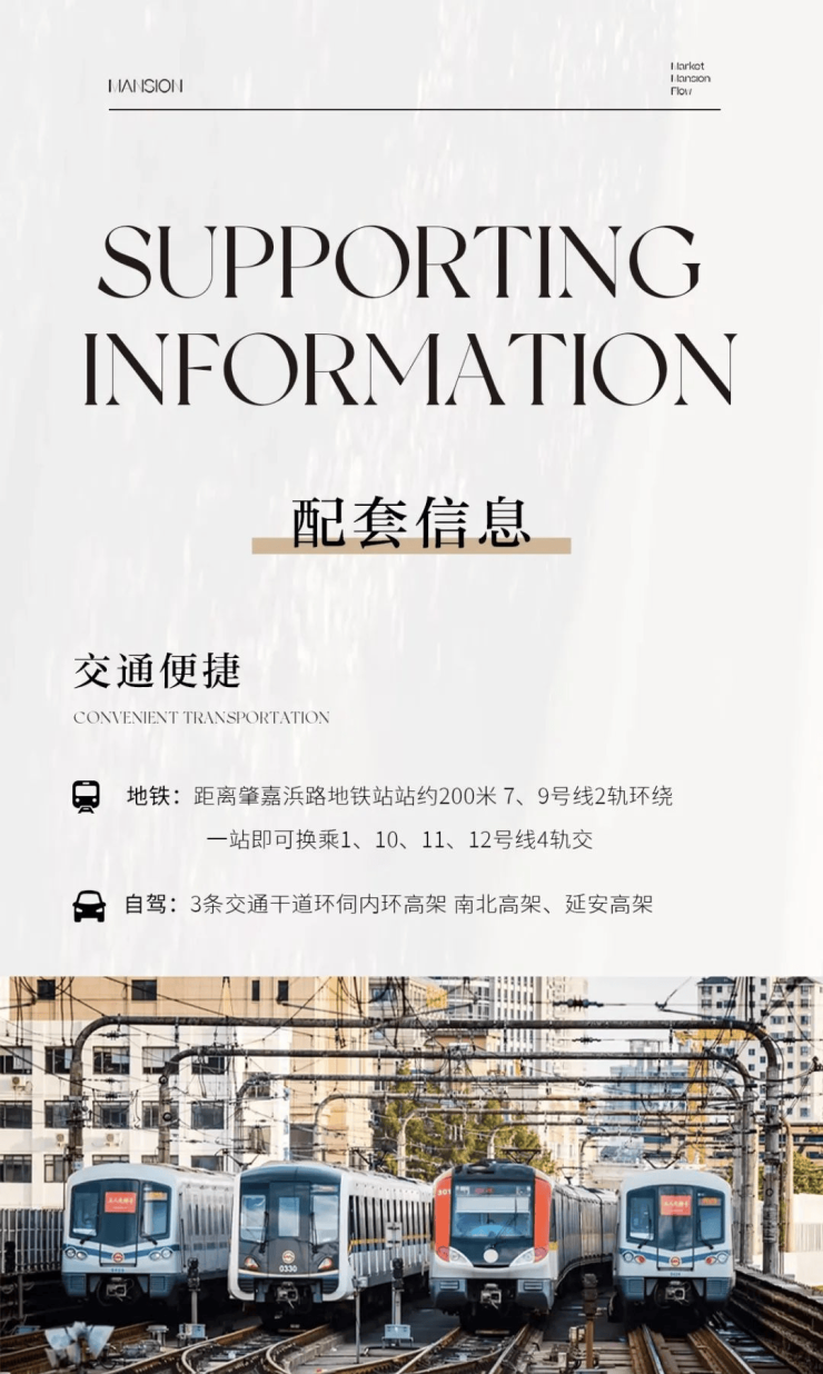 交通:地铁:7/9号线肇嘉浜路站170米,另有1、10、11、12号线4轨交环绕。自驾:3条交通干道环伺,内环高架、南北高架、延安高架,交通非常便利。