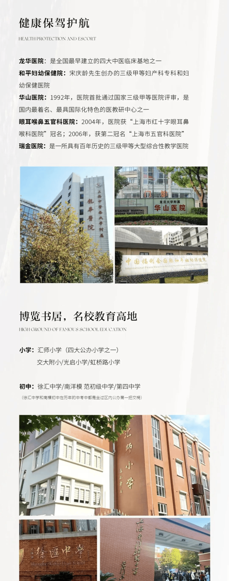 学校:汇师小学,交大附小光启小学和虹桥路小学,徐汇中学、南洋模范初级中学和第四中学。