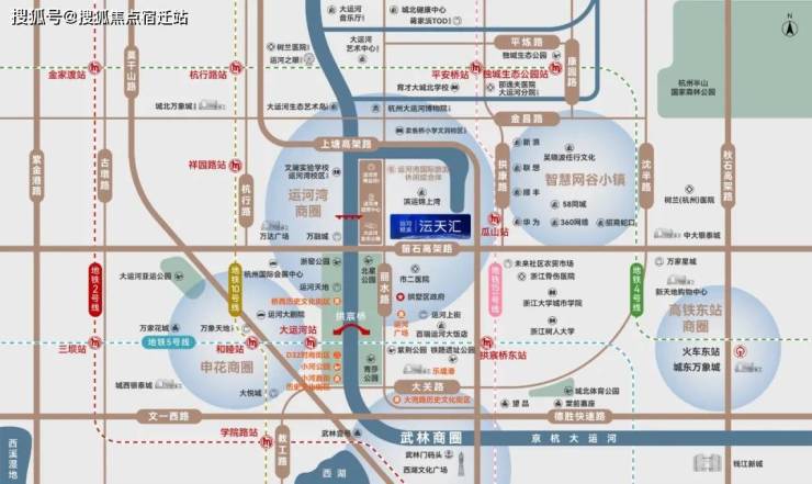 【交通立体纵横】:紧邻留石、上塘等高架主干道,水上巴士贯通运河脉络,高效连接杭州东站与萧山机场,商务出行从容高效;地铁5号线及15号线(规划中)环绕,周边多路公交覆盖,无车通勤便捷。
