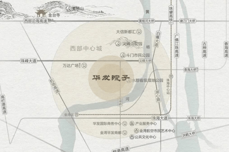 交通方面:华发院子,位于西城核心区域,临近双湖桥。衔接金湾华发商都仅需10分钟行程;通过洪鹤大桥可40分钟内到达横琴或拱北口岸。