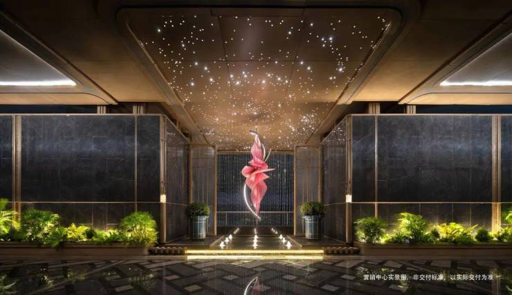 不至于尺度的震撼,宽庭得以匹配名门仪制的精髓,更在于其难以掩藏的匠心。南山工匠跨越全球采撷安哥拉黑、雪山白、普拉达绿等全球奢石,累计上百小时的研磨精锻,旨为不负跨越山河的厚重质感,敬呈嘉定熠熠生辉的主城壹号门牌。门庭中央,一尊仿玉石艺术装置巍然矗立,成为视觉的焦点与尊荣的引领,这不仅是一件艺术品,更是“缦奢归璞”的序曲。