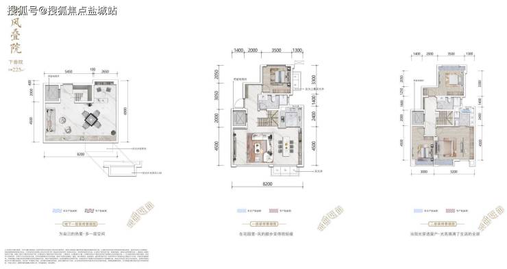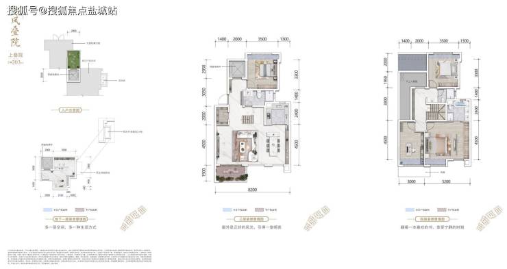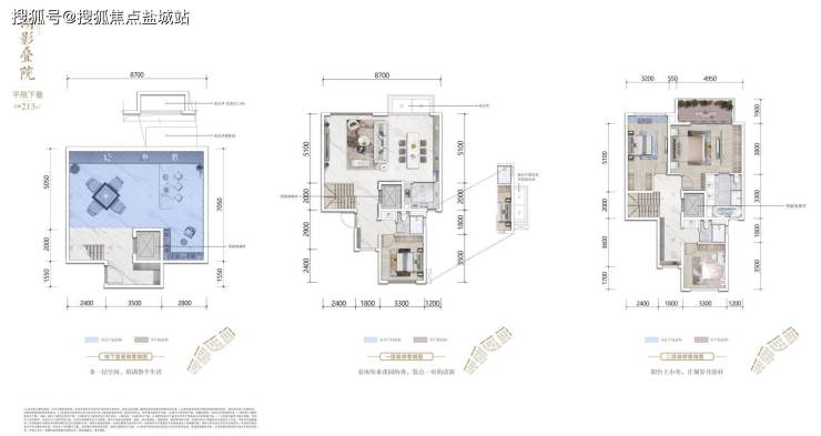 两叠下叠225㎡:独门院落,前庭可直接花园入户,与客厅相连,后院与老人房连通,老人独立使用。