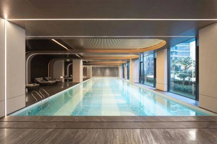 社区主要业主活动空间——Club N°5。包含恒温泳池 健身房 瑜伽房 健身房 亲子篮球 壁球等。已经实景呈现。健身器材为意大利知名品牌泰诺健的13件套,是奥林匹克运动会连续8届的官方供应商。(健身房)再如普拉提设备,重金引进加拿大知名品牌曼丽丘。