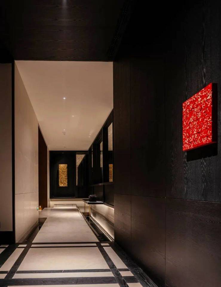还有专门的艺廊,布置水景,空间灵动,再挂上雕塑家、艺术家的作品,整个空间逼格满满。