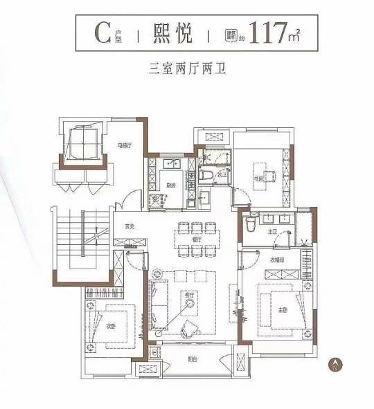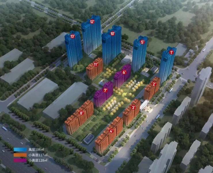 产品类型:毛坯高层和洋房,主力户型为107㎡三房两厅两卫、117㎡四房两厅两卫、128㎡四房两厅两卫。