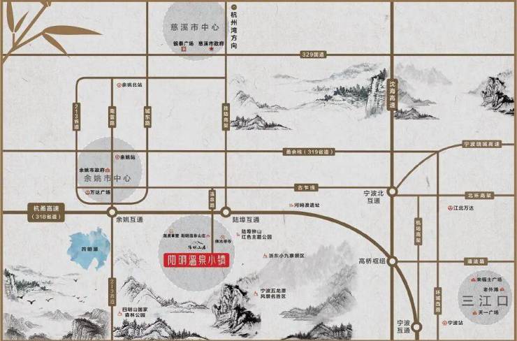 阳明温泉小镇也不是一个宁波周边的孤寂小镇,而是在海曙西板块的全新后花园,呈现出的一席拥山揽景明风美学院墅。