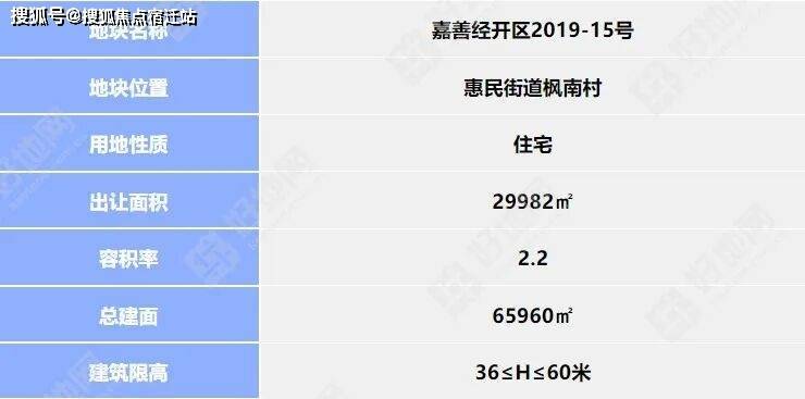 好地网了解到,板块有1宗宅地待推,嘉善经开区2019-15号地块,规划出让面积约45亩,容积率2.2,总体量约6.6万方。