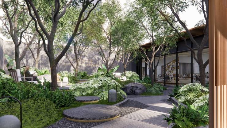 映鉴世界的美学观:私家院落以梁柱结构退让,延续中式建筑里的线条感,让建筑“隐身”,让山水与生活无界交融;在整体现代风格中适当融入禅意美学,定义出领衔时代的合院产品。