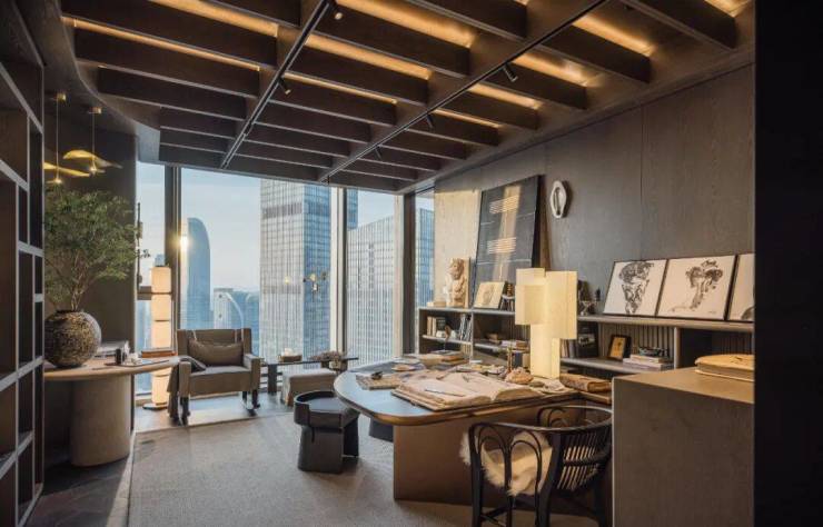 兆丰ESSENCE拥有560-430-730㎡三款户型,空间最豪阔的,是由春山秋水设计的建面约730㎡展示区——