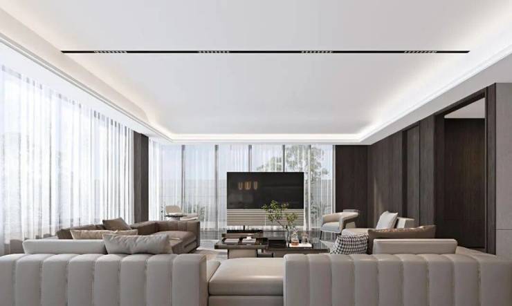 近13米南向面宽和全玻璃立面,立体环幕视野收纳四季光影,横厅设计兼容会客、宴饮、收藏……一线公园景观成为动态背景。