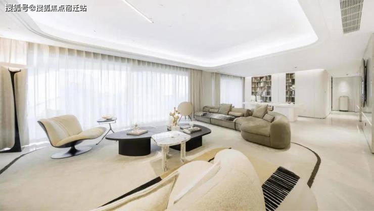 约440㎡“香奈儿”西边套,浅淡得宜的洁白,温润如玉的蜜色,将空间衬得时髦优雅。