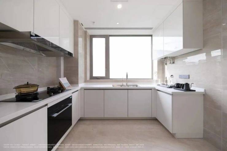 再看室内精装修,标准好到不可思议。3.0-3.2米的黄金层高,全系门窗除了落地玻璃作开启扇,竟然是双腔LOW-E玻璃的系统窗,厨房配有旋转助力式把手,顶天花的木包门楣,上轨无阻尼的联动移门;