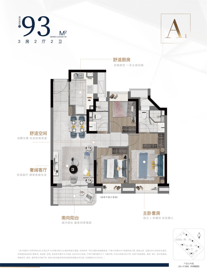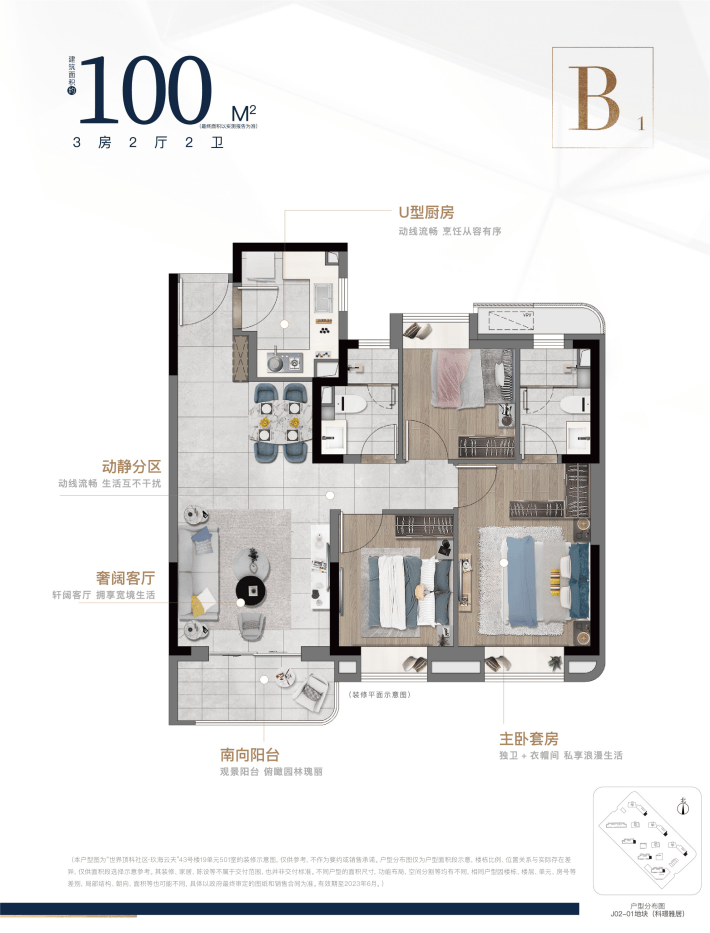 (本户型图为“世界顶科社区·玖海云天”26号楼21单元502室的装修示意图,仅供参考,不作为要约或销售承诺。户型分布图仅为户型面积段示意,楼栋比例、位置关系与实际存在差异,仅供面积段选择示意参考。其装修、家居、陈设等不属于交付范围,也并非交付标准。不同户型的面积尺寸,功能布局,空间分割等均有不同,相同户型因楼栋、楼层、单元、房号等差别,局部结构、朝向、面积等也可能不同,具体以政府最终审定的图纸和销售合同为准。有效期至2024年2月。)