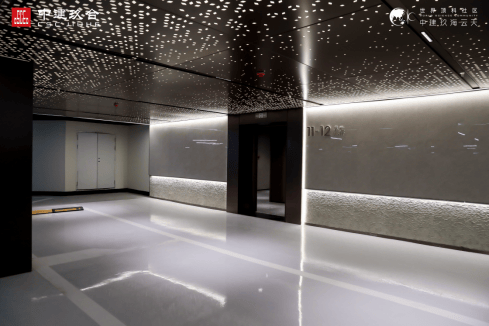 作为临港新房品质天花板,中建玖海云天是首个将均价10万+房子才有的配置——星空地库搬到了临港,也是目前临港唯一一个全装修地库。汲取“劳斯莱斯”星空顶灵感,地库入口迎宾空间,香槟金满天星铝板搭配星光灯交相辉映,抬头即“一片星空”,震撼视觉体验。两侧墙体玻璃幕镶嵌灯柱,拼接米色系星云石墙面,将传统的地库变成更具艺术感的场域,整体视觉与审美都对标豪宅地库。