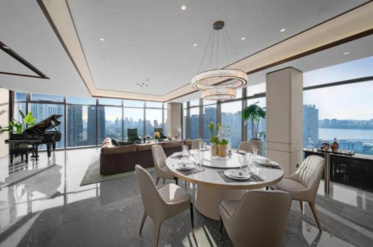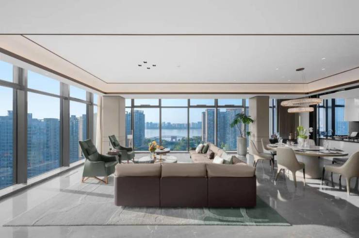 空间设计上,江澜云境阁匠心独运,采用两梯一户的尊贵配置,搭配私密入户门厅,尽显尊贵与私密。室内布局精妙,动静区域巧妙分隔,LDK一体化横厅设计,双主空间布局,让生活空间既开阔又富有层次感。更令人赞叹的是,4.19米的非凡层高,搭配270°全景落地窗,将自然美景尽收眼底,每一次驻足都是一场视觉的盛宴。