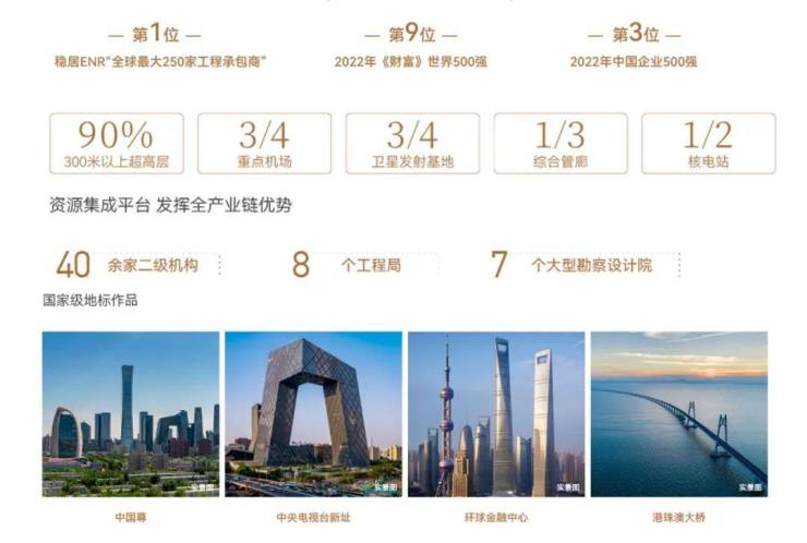 中国建筑集团有限公司(简称中建集团),世界500强企业,是我国专业化发展最久、市场化经营最早、一体化程度最高、全球规模最大的投资建设集团之一。