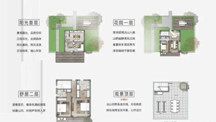 一重敞阔露台,二重私家庭院,三重观景平台,