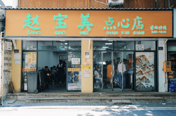 譬如杭州老牌煎包店赵宝美点心店,从早晨营业到中午,店里的食客络绎不绝,有天天来吃的老杭州人,也经常有很多慕名而来的新客。