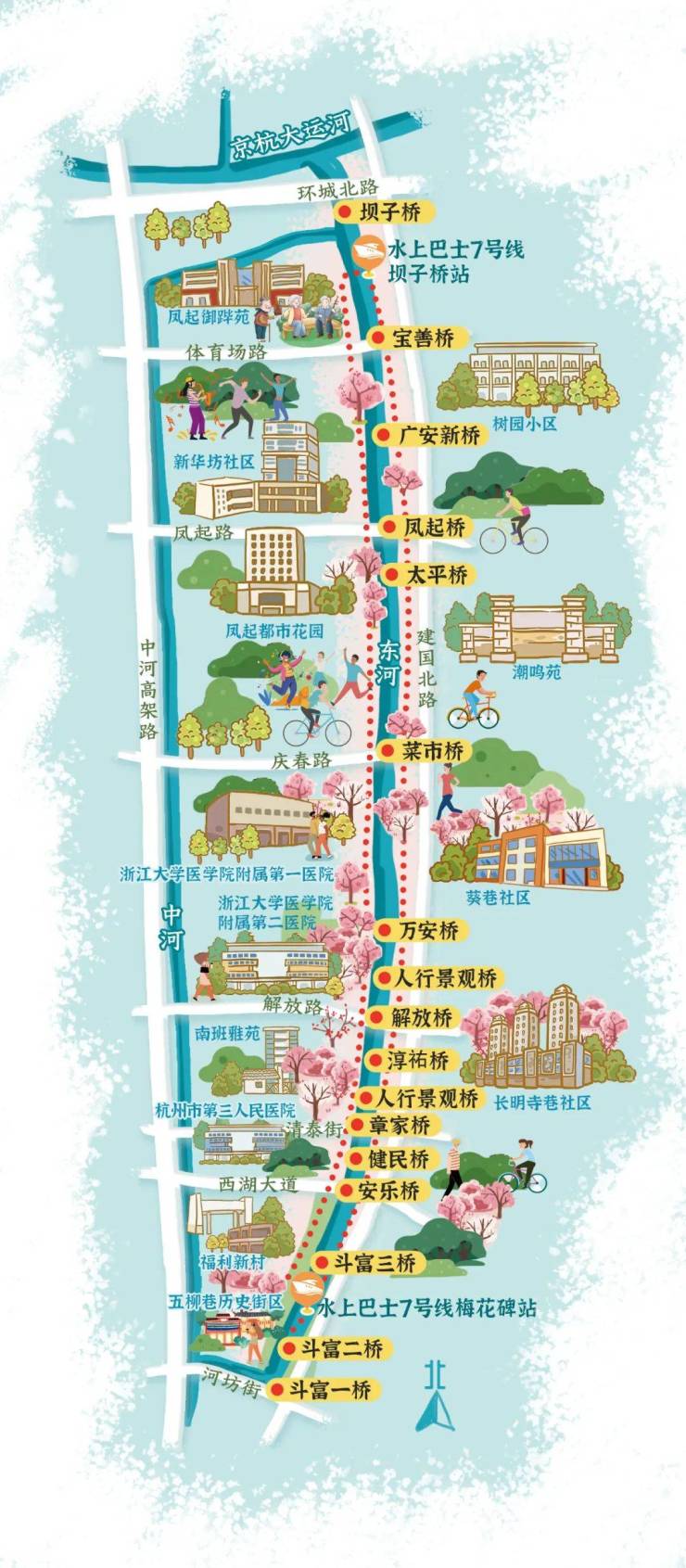 4、水上巴士7号线,因东河河道条件限制,运营船舶数量及客位数有限,如等候时间过长,建议步行游览。