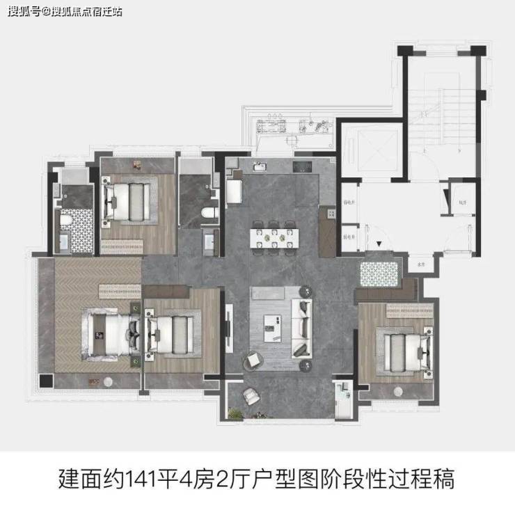 建面约127㎡直接进阶4房,功能性拉满,适配当下越来越多的二胎或三代同堂家庭。