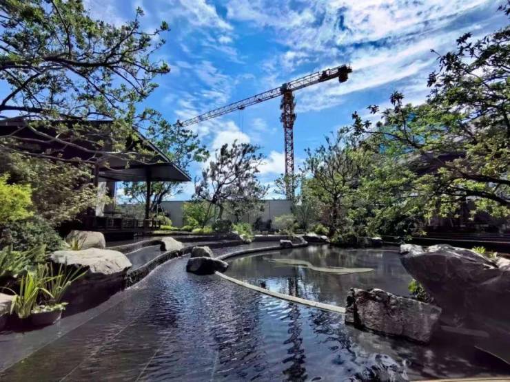 步入图片所呈现的示范区与实体楼泛会所内部,更是一场穿越至宋画意境的旅行,燕尾榫、擗帘竿等传统元素被巧妙融入,不张扬却尽显古朴与简约交织的高级韵味,让人在现代与古典的和谐共生中流连忘返。