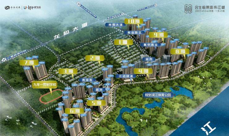 项目是城区唯一体量超200万的江景大盘,相比小社区而言规划更好,设施更齐全,内部配套更完善,生活氛围更浓郁,目前已有林荫大道、商业街、华润万家(已签约进驻)、泳池、儿童天地、篮球场、羽毛球场等配套,后期生活配套齐全,规划有滨江体育公园、九年一贯制学校、健身中心、乐活集市、华润万家超市(今年开业)等,且大盘分期开发,配套越来越醇熟。