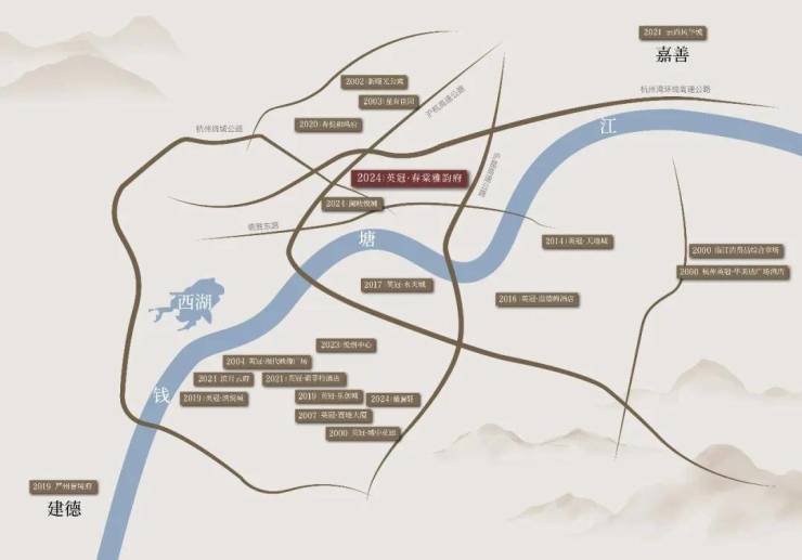 英冠控股集团深耕杭州25载,始终追求杭派精工品质,凭借稳健的战略决策形成以地产开发、高星级酒店、工程建筑、物业服务、商业管理为核心的五大业务板块。