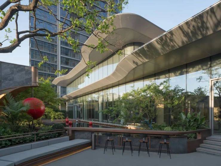 林下戏水池采用浅滩设计,水深严格控制在35cm,孩童奔跑时溅起的水花与树影交织。这种将古典园林"可游可居"理念转化为当代社交场的手法,在微笑草坪达到极致:弧形草坡既是露天剧场,又能随时变身为星空影院或茶会场地。