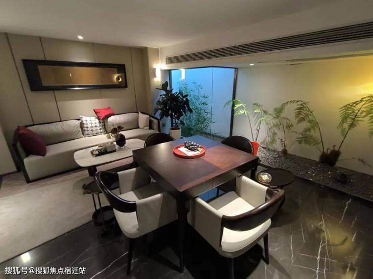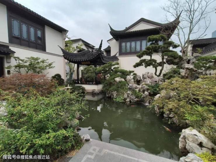 而合院中间的中央景观则以松树、奇石、池水、亭子为元素,按照元末明初山水画的风格去构建,颇有“小园香径独徘徊”的幽深之感。