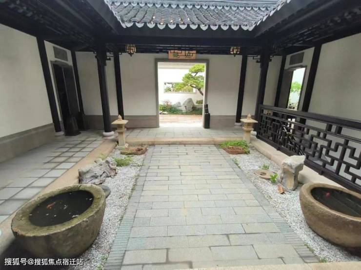 从大门入户开始,场景布置便按照传统风水布置。据置业顾问介绍,整体的布局呈现水聚天地、四水归堂的一个风水布局,两边呈对称分布。老石臼承接雨水——聚水聚气聚财,摆放太湖石——“石”来运转,大门到庭院共有三道门——三进门,无不显露出江南玺对于风水方面的注重。