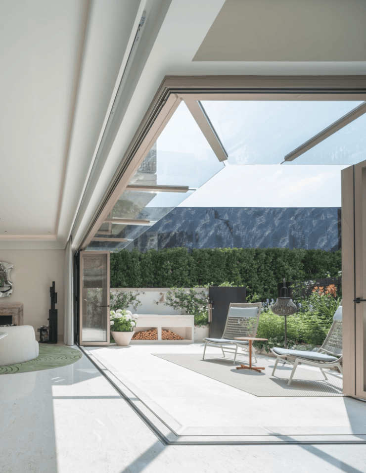 270度的无界宽厅,将客厅与庭院融为一体彼此连接,空间交织共生。瞩目的私享花园,客厅连接着宽敞的庭院,让整个一层空间与自然无界交融,这是东方人对于生活的向往,是物质之外的精神栖居 。置身其中,嗅觉、听觉、触觉、视觉、味觉五感被全面唤醒,充分感受到身居闹市而独享自然静谧的奢华体验。