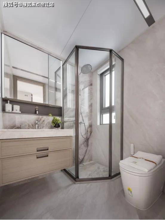 主卫配置魔镜,双面高清镜面,内含美妆冰箱的镜柜及卫浴柜,恒温冷藏。