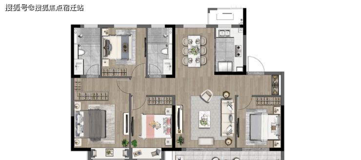 可变户型:奢阔三套房、舒适大四房个性化打造,满足不同人群的居住需求。