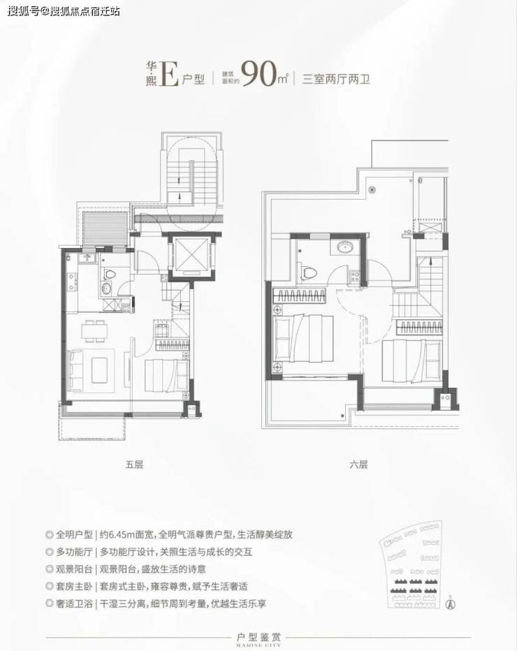 建筑面积大约 101㎡的 F 户型与 G 户型皆为市场上深受认可的经典飞机款户型。