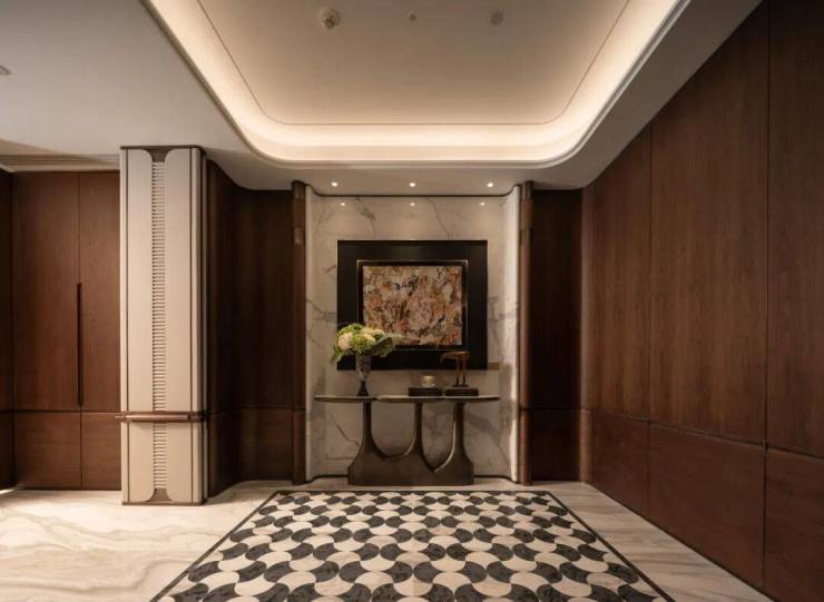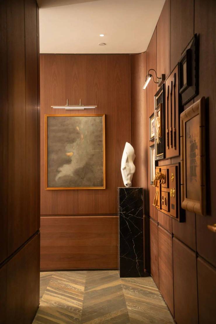 灵感的欣赏在于工艺与细节之间。空间以石材、金属与皮革为主要材质谱系,交织出一曲显性奢华的感官盛宴。感性的刺绣工艺如流水般柔软流畅,在灯光下泛起微妙光泽;天然石材的浑厚与金属的精致形成张力对话,木饰面的温润为空间注入东方气韵。每一处细节都经过精心织就,在光影流转间,营造出既当代又永恒的品质感受。