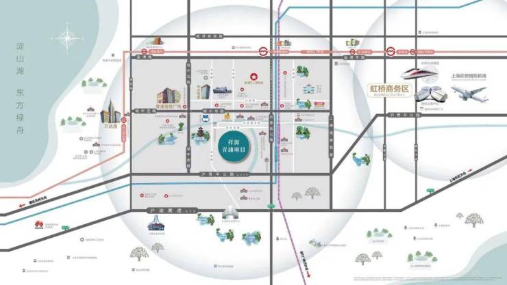 交通配套方面:项目周边有沪青平公路,外青松公路,沪渝高速和绕城高速环伺,自驾还是相对便捷;地铁17号线青浦新城站,距离项目约2.5km。